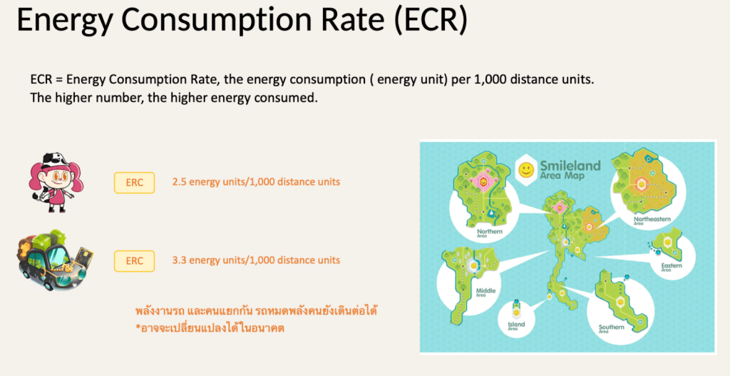 ซึ่งที่มีการฟื้นพลังงานก็เพราะมีสิ่งที่เรียกว่า Energy Consumption Rate (ECR) ที่ยิ่งเดินทางไกลก็จะต้องเสียพลังงานเยอะนั่นเอง โดยจะคำนวณเป็นต่อ 1,000 Distance Unit
