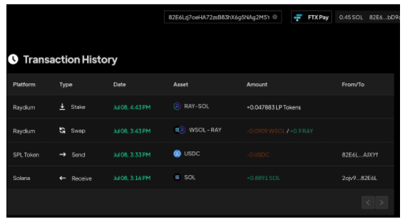นอกจากนั้น Step Finance ยังสามารถให้ผู้ใช้งานได้ตรวจสอบธุรกรรมย้อนหลังที่เกิดขึ้นบน Solana Chain ได้อีกด้วย เพียงเข้าไปที่ Transaction History แล้วใส่ Solana Address ที่ต้องการลงไป