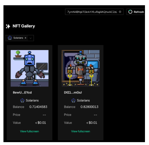 สาย NFT น่าจะถูกใจสิ่งนี้เพราะใน Step Finance จะมี NFT Gallery ซึ่งผู้ใช้สามารถเข้ามาเพื่อดู NFT ที่ครอบครองบน Solana Chain ได้เพียงแค่วาง Solana Address