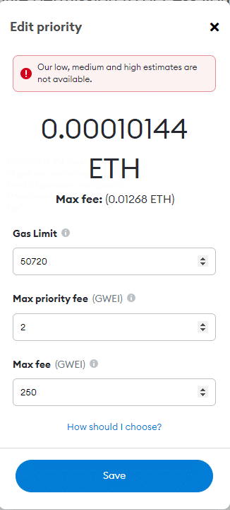 จนถึงตอนนี้ จะมีการส่ง metamask prompt มาให้ และคุณก็ต้องกดยืนยันธุรกรรม อย่าลืมตรวจสอบธุรกรรมและราคาของค่าธรรมเนียมให้ดี และจำให้ขึ้นใจเลยว่า ค่าธรรมเนียมสูงสุดนั้นจะต้อง “เท่ากับ” ค่าธรรมเนียม ณ ปัจจุบันเป็นอย่างน้อย จึงจะผ่านขั้นตอนนี้ไปได้
