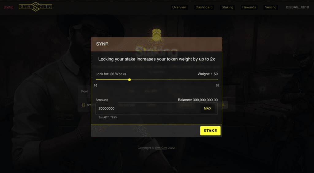 เปิดคู่มือ How To Stake “SYN CITY (SYNR)” — เกมเมตาเวิร์สมาเฟียเจ้าแรก