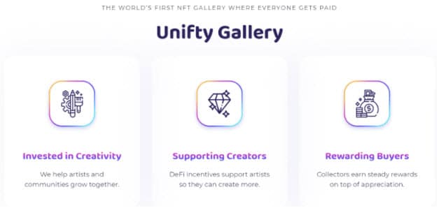 สิ่งสำคัญของ Unifty ก็คือการสนับสนุนศิลปินและโปรเจค NFT โดยเลือกที่จะเป็นผู้บุกเบิกแทนที่จะทำตามแพลตฟอร์มอื่น