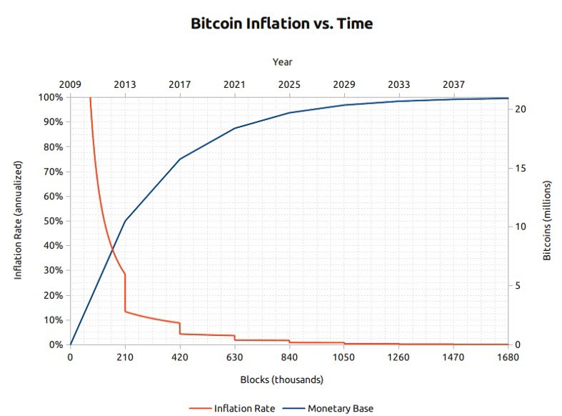 ไม่ว่า Bitcoin จะมีคนขุดมากแค่ไหนมันจะถูกผลิตด้วยอัตราคงที่และน้อยลงเรื่อยตามหลัก Halving และมีจำนวนที่จำกัด