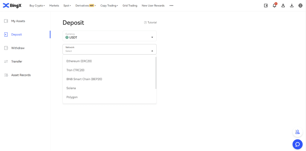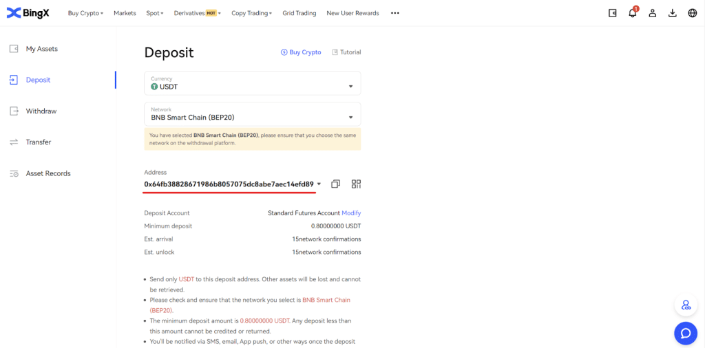 2.เลือกเหรียญ และบล็อกเชนที่จะฝากเหรียญ, แนะนำให้ฝากผ่าน BNB Smart Chain (BEP20) เพราะถูกที่สุด