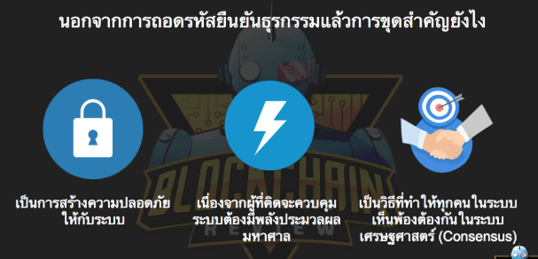 นอกจากส่วนที่เราได้อธิบายมาแล้วในขั้นต้น บางคนอาจจะยังสงสัยว่าแล้วสุดท้ายเราจะมานั่งแก้ไขโจทย์พวกนี้ไปทำไม คำตอบก็คือเพราะมันเป็นการรักษาความปลอดภัยให้แก่ระบบ ในระบบคอมพิวเตอร์ทั่วไปนั้นมักจะถูกโจมตีจากการถูก DDOS อยู่บ่อยๆซึ่งจะทำให้ระบบเสียหาย ระบบ Bitcoin จึงกำหนดว่าถ้าคุณจะเป็นคนที่ยืนยันธุรกรรมได้คุณจะต้องเสียต้นทุนจำนวนหนึ่งนั้นก็คือค่าไฟที่ใช้ในการขุดเป็นต้นทุน และนั้นทำให้ระบบของ Bitcoin ไม่ถูกก่อกวน และบางคนก็อาจจะคิดว่าแล้วถ้าคนที่ขุดชนะจะโกง หล่ะเป็นไปได้ไหม? คำตอบคือได้ครับ หากแต่นักขุดคนนั้นต้องขุดชนะติดต่อกัน 3 ครั้งขึ้นไปเนื่องจากรระบบของ Bitcoin ส่วนใหญ่นั้นจะรับธุรกรรมที่ 3-6 Confirmation ซึ่งทำให้หากคุณคิดจะโกงระบบคุณต้องมีกำลังขุดที่มหาศาลมากจนเป็นไปได้ในทางทฤษฎีแต่ยากในทางปฏิบัติ และสุดท้ายมันคือกฎๆหนึ่งที่ทำให้ระบบที่ไม่มีตัวกลางของ Bitcoin ที่ทำงานอยู่บนคอมพิวเตอร์กว่า 10,000 เครื่องยอมรับในสิ่งๆหนึ่งนั้นก็ใครจะเป็นคนยืนยันธุรกรรมซึ่งในทางเทคนิคเราเรียกคำนี้ว่า Consensus (คอน-เซ็น-ซัส)