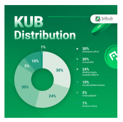 KUB จะถูกสร้างขึ้นมาทั้งหมด 1000 ล้าน KUB โดยในเฟสแรกจะมี 180 ล้าน KUB หมุนเวียนใน ecosystem และ มีราคาเปิดขายอยู่ที่ 30 บาท โดยจะแบ่งสรรปันส่วนออกเป็น 6 ก้อนหลักๆ