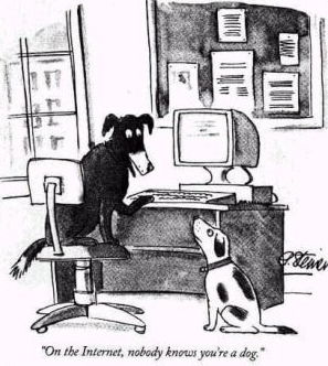 ผมคิดว่ามีหลายคนไม่เชื่อนะครับและนี้เป็นปัญหาสำคัญเลยว่าตั้งแต่เรามีอินเตอร์เนตมาตั้งแต่เรามีโลกดิจิทัลมาข้อมูลไม่ใช่สิ่งที่สามารถเชื่อถือได้ 100% เสมอไปครับ มันเคยมีการ์ตูนตลกๆ ล้อเลียนเรื่องนี้นะครับ โดยเป็นการ์ตูนของปีเตอร์ สไลเดอร์ ที่ตีพิมพ์ในหนังสือพิมพ์ของ The new Yorker นะครับ ประมาณปี 2536 นะครับโดยในรูปเป็นรูปหมาสองตัวกำลังคุยกันนะครับ โดยหมาตัวนึงกำลังกดคอมพิวเตอร์เล่นอินเตอร์เนตแล้วก็แชทกับคนอื่นอยู่ ส่วนหมาอีกตัวนึงก็นั่งมองดูตัวนั้นแชทกับคนอื่น แล้วก็ถามว่าเห้ยแกเป็นหมานิหว่าแล้วแกมาแชทกับคนอื่นแบบนี้ คนอื่นเข้าไม่รู้หรอว่าแกเป็นหมา หมาตัวนั้นก็ตอบมาว่าในโลกอินเตอร์เนตไม่มีใครรู้หรอกว่าคุณเป็นหมา