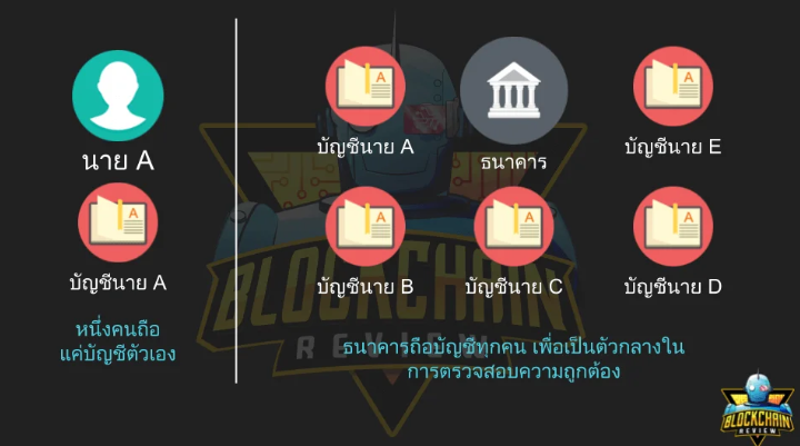 แต่จริงๆ คอนเซ็ปที่การเราเก็บข้อมูลบัญชีแยก จริงๆ มันมีมานานแล้ว มันมีมาก่อน Blockchain ครับ มันเป็นเทคโนโลยีที่เรียกว่า distributed ledger หรือพูดง่ายๆ คือการเก็บสำเนาข้อมูลบัญชีแบบกระจาย ซึ่งมีมานานแล้วแหละ แต่ทีนี้สิ่งที่ Blockchain นำเสนอเพิ่มขึ้นมาใหม่ก็คือ อย่างนึงคือการรูปแบบการเก็บข้อมูลของ Blockchain