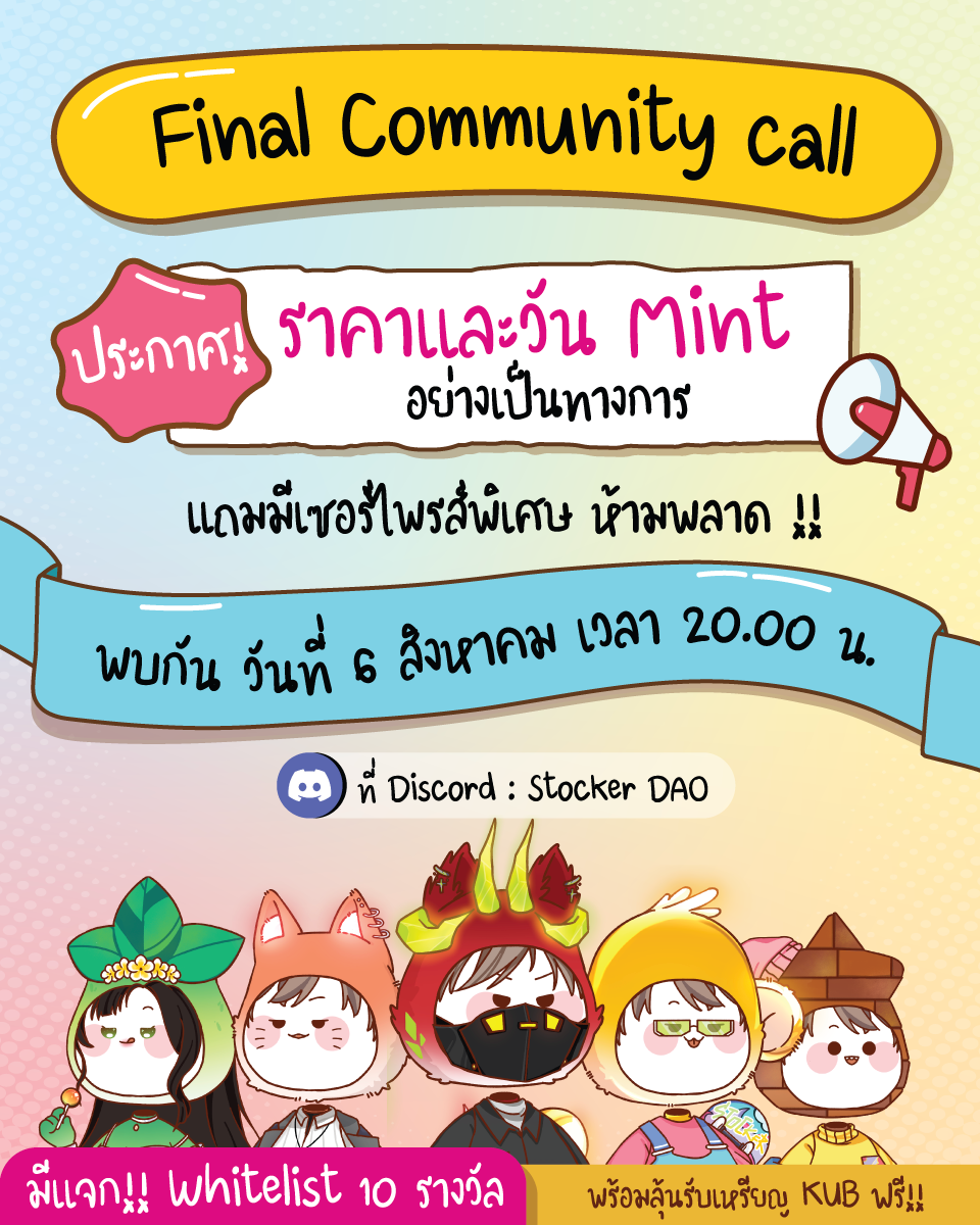 นอกจากการอัพเดตความคืบหน้าแล้วทาง StockerDAO ยังเผยว่าจะมีการแจกเหรียญของ Bitkub หรือ KUB โทเค็นด้วย แฟน ๆ KUB ไม่ควรพลาด! และยังมีการแจกรางวัลสำหรับกลุ่ม Whitelist อีกด้วยกว่า 10 รางวัล