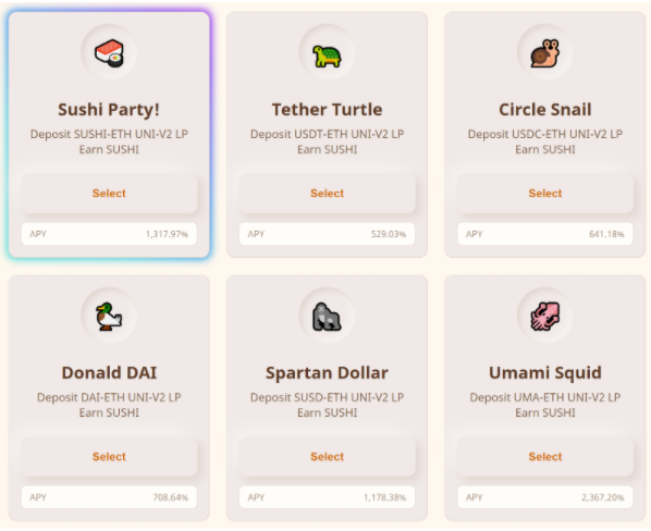 Sushi Swap นั้นเป็นแพลทฟอร์มใหม่ที่ลอกเลียนแบบ Uniswap แต่สิ่งที่แตกต่างคือการที่ Sushi swap นั้นทำการแจกเหรียญ Governance ด้วย โดยในปัจจุบันการทำ Yield farming บน Sushi Swap นั้นให้ผลตอบแทนที่ดีมาก โดยผู้ใช้งานต้องเอาเหรียญ LP ในคู่ของ Sushiswap มาฝากบน Sushiswap