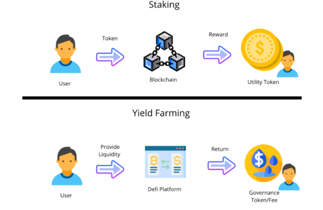 Yield Farming นั้นคือรูปแบบการทำกำไรอย่างหนึ่งที่ค่อนข้างคล้ายการ Staking แต่มันแตกต่างกันตรงที่เงินที่เราเอาไปฝากนั้นถูกนำไปใช้ในระบบจริงๆเพราะมันจะกลายเป็น”สภาพคล่อง” ให้ระบบๆนั้นใช้งาน และเราก็จะได้ผลตอบแทนจากระบบในรูปแบบต่างๆไม่ว่าจะเหรียญหรือค่าธรรมเนียมที่อาจจะมาจากการใช้งานจริงๆ