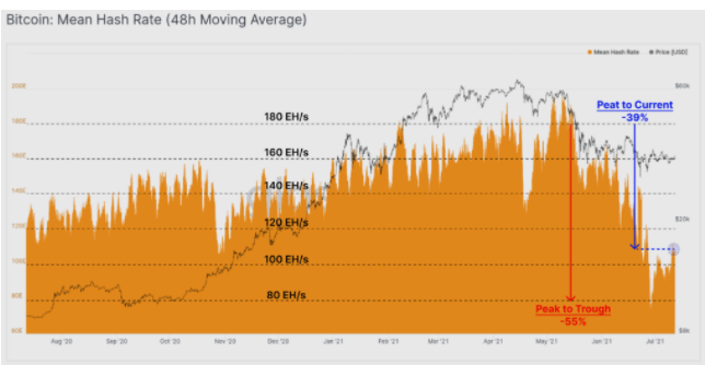 สิ่งนี้ทำให้อัตราการลดลงของ Hashrate จากสูงสุด 55% เหลือเพียง 39% เท่านั้น
