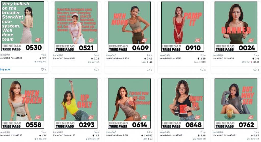 กล่าวอีกนัยหนึ่ง NFT สามารถใช้เป็นเหมือนกับบัตรสมาชิกสำหรับชุมชนบน SO-COL และ IreneDAO เป็นโครงการแรก