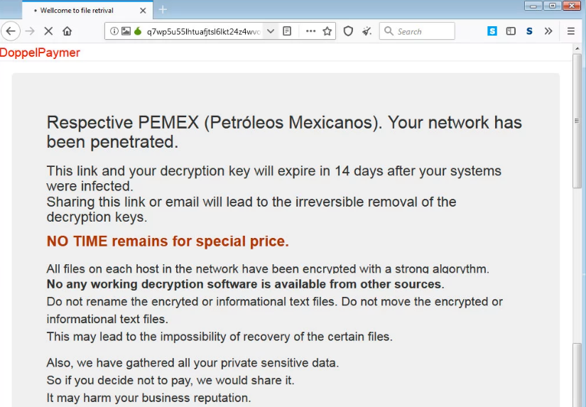 ทางด้าน Bleeping Computer รายงานว่ามีบันทึก ransom notes ที่หลุดออกมาจากเว็บไซต์ชำระเงิน Tor payment ได้รายงานว่าเจ้าของไวรัส ransomware ได้เรียกร้องเงินจาก Pemex จำนวน 565 bitcoin เพื่อถอดรหัสไฟล์และหยุดการโจมตี