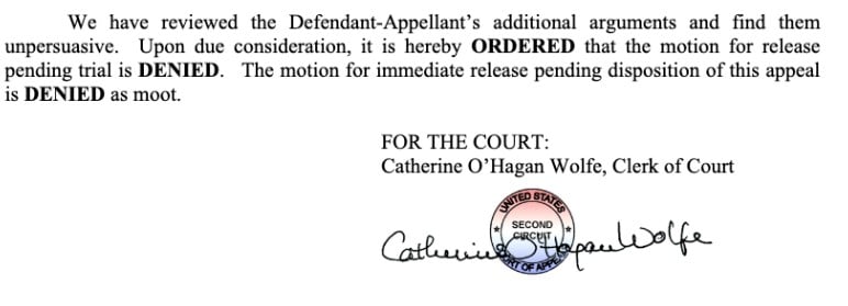 ในคำสั่งวันที่ 21 พ.ย. ศาลอุทธรณ์ของสหรัฐฯ ระบุว่า การกระทำก่อนหน้านี้ของ Bankman-Fried ที่เข้าไปยุ่งเกี่ยวกับพยาน 2 คนในขณะที่ได้รับการปล่อยตัวก่อนการพิจารณาคดี "เป็นเหตุผลสำคัญ" ที่อยู่เบื้องหลังการปฏิเสธคำขอ