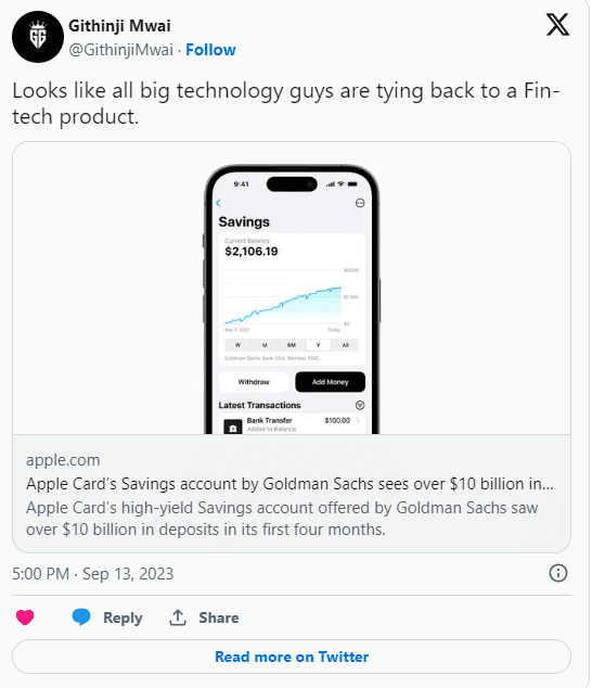 Apple และ Goldman Sachs ยกเลิกแผนการที่จะเปิดตัวแอปสำหรับ Futures Trading ตามที่ CNBC รายงานเมื่อวันที่ 19 กันยายน โดยอ้างถึงผู้ที่คุ้นเคยกับแผนดังกล่าว