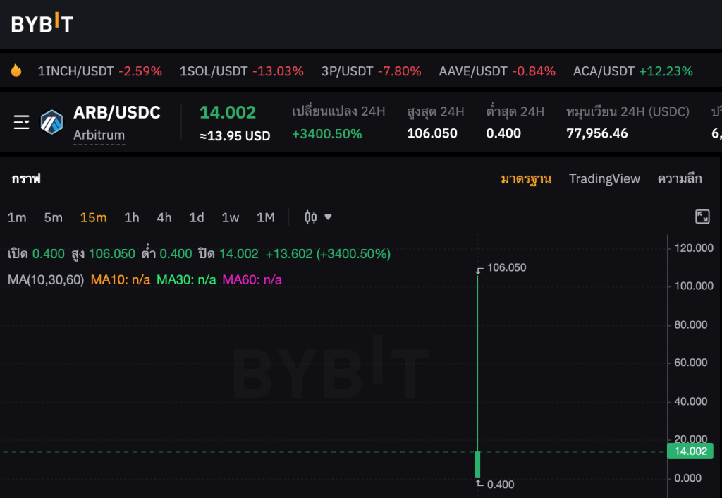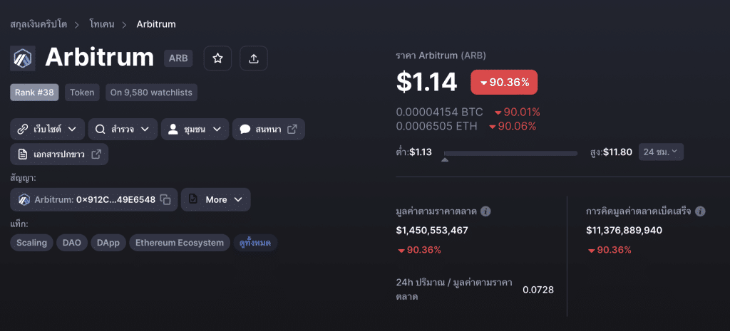 อ้างอิงราคาปัจจุบันที่เขียนจากเว็บไซต์ CoinMarketCap ราคาของโทเค็น Arbitrum ได้ตกฮวบลงมาที่ 1.xx ดอลลาร์แล้ว อย่างไรก็ตาม ราคานี้ยังไม่คงที่ เนื่องจากยังมีอีกหลาย Exchange ที่ยังไม่เปิดให้ซื้อขาย ซึ่งรวมไปถึงพี่ใหญ่อย่าง Binance และ Coinbase ด้วย