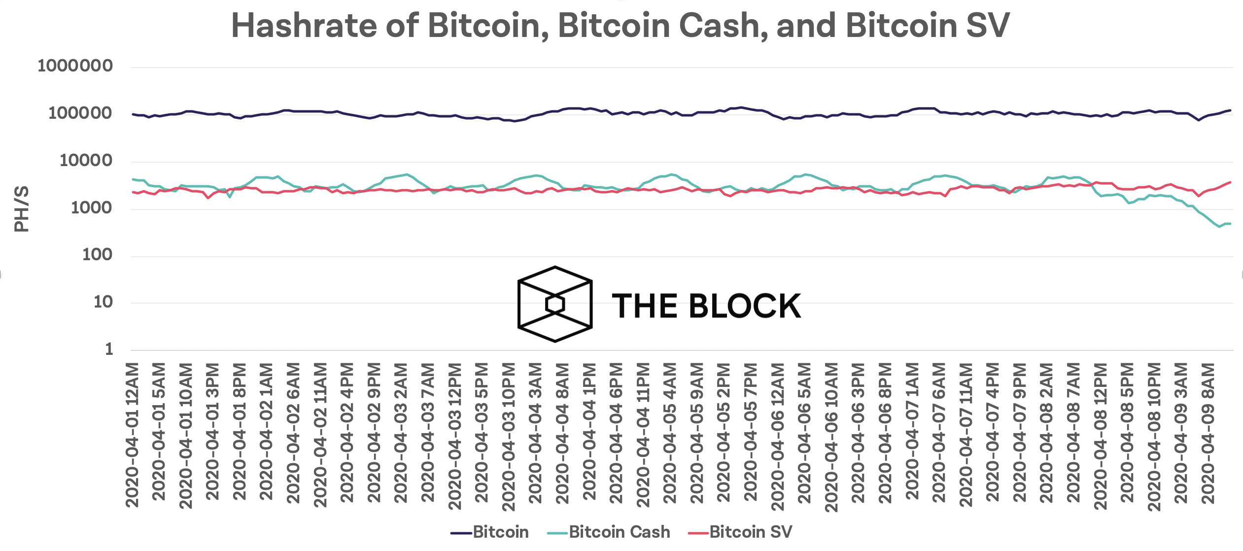 การ halving ของ BCH เกิดขึ้นก่อนหน้า Bitcoin เพียง 1 เดือนเท่านั้น โดยข้อมูลจาก Coin.Dance ซึ่งได้ทำการติดตาม hash rates ของ Bitcoin, Bitcoin Cash และ Bitcoin SV แสดงให้เห็นว่า hashrate ของ BCH นั้นลดลงในวันที่ 8 เมษายนจาก 4,000 PH/s เหลือเพียง 1,900 PH / s และพอเข้าวันที่ 9 เมษายน ก็ลดลงสู่ระดับต่ำสุดที่ 421 PH / s