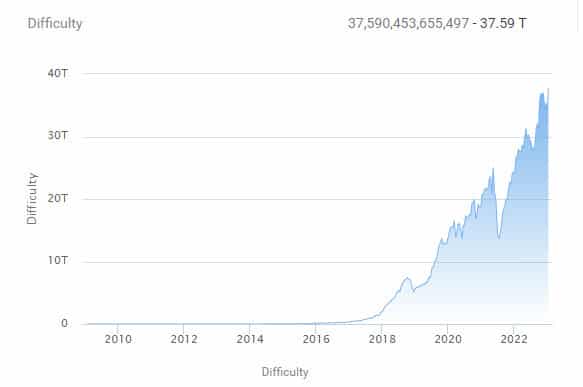 ความยากในการขุดเพิ่มขึ้นจาก 34.09 ล้านล้านเป็นสูงสุดที่ 37. 59 ล้านล้าน แสดงถึงการเพิ่มขึ้นถึง +10.26 %