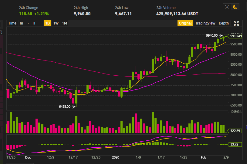 ราคา Bitcoin เพิ่มขึ้น 1.19% ในวันนี้ โดยขึ้นมาอยู่ที่ $9,916 ทางด้านนักวิเคระห์คาดว่ามีโอกาส 80% ที่จะพุ่งผ่าน $10,000 ในอีก 2 วัน