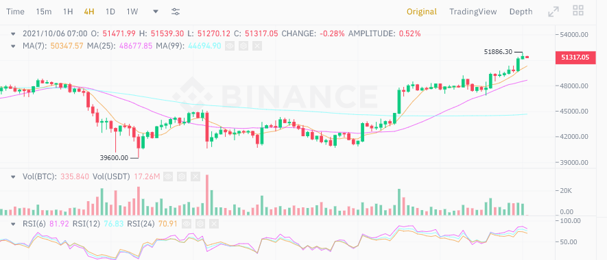 นับตั้งแต่ร่วงมาแตะ 40,885 ดอลลาร์ในวันที่ 29 กันยายน ราคา BTC ได้พุ่งขึ้น 26.8% และจุดประกายความหวังของหลายคนในการเห็นการปิดราคาสิ้นปีที่สูงกว่าระดับ $100,000 ซึ่งเป็นระดับที่กลายเป็นราคาเป้าหมายสำหรับสิ้นปี 2021 ไปแล้ว