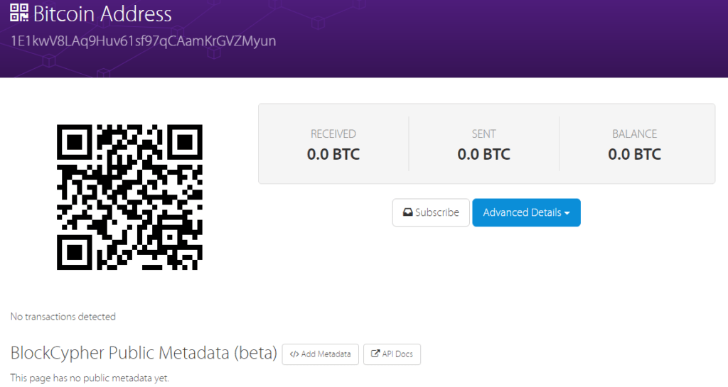 โดยตอนนี้ผู้ไม่ประสงค์ดีพยายามหลอกลวงให้ผู้ใช้งานส่ง Bitcoin ไปที่ address 1E1kwV8LAq9Huv61sf97qCAamKrGVZMyun ซึ่งเมื่อทีมงานเข้าไปตรวจสอบก็พบว่ายังไม่มีผู้โชคร้ายที่หลงเชื่อและส่ง Bitcoin ไปที่ address นี้อย่างไรก็ตามการหลอกลวงครั้งนี้เพิ่งดำเนินมาได้ราวๆ 13 ในขณะที่เขียนบทความนี้ ขอให้ท่านผู้อ่านอย่าหลงเชื่อและส่ง Bitcoin ไปเด็ดขาด