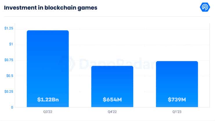 ในด้านเงินลงทุนในพื้นที่เกม Web3 อยู่ที่ 739 ล้านดอลลาร์ เพิ่มขึ้น 13% จาก 654 ล้านดอลลาร์ที่รวบรวมได้ในไตรมาสที่สี่ของปี 2022