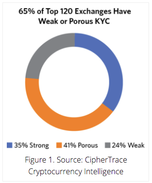 รายงานของ CipherTrace ซึ่งเผยแพร่เมื่อวันพุธ 27 พฤศจิกายน ได้ทำการตรวจสอบความปลอดภัยของเว็บเทรด crypto 120 อันดับแรก พบว่า "สองในสามจากเว็บเทรด cryptocurrency ทั้งหมด 120 แห่ง ที่ได้รับความนิยมมากที่สุดนั้นมีมาตรการ know your customer (KYC) ที่อ่อนแอหรือมีช่องโหว่" และ "32% ของเว็บเทรดที่มีการซื้อขาย privacy coins"