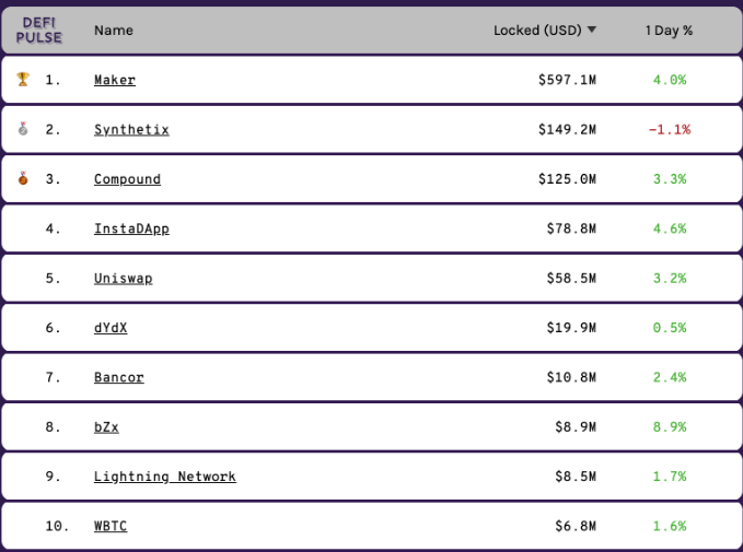 ตามที่เว็บไซต์ Defipulse.com ได้วิเคราะห์ พบว่าปัจจุบันมีคริปโตมูลค่า 1 พันล้านดอลล่าร์ที่ถูกล็อคอยู่ ทั้งใน smart contracts , protocols และ decentralized applications (DApps) ที่สร้างขึ้นบน Ethereum - โดยเกือบ 60% อยู่ใน DAI ซึ่งเป็น stablecoin ของ MakerDAO