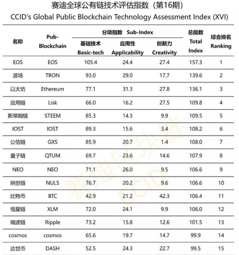 การจัดอันดับ Crypto ของ CCID Research Institute ของจีน พบว่า EOS ยังคงครองอันดับหนึ่งต่อไป ในขณะเดียวกัน Tron (TRX) ก็แซง Ethereum (ETH) ขึ้นมาอยู่อันดับสองได้อีกครั้ง
