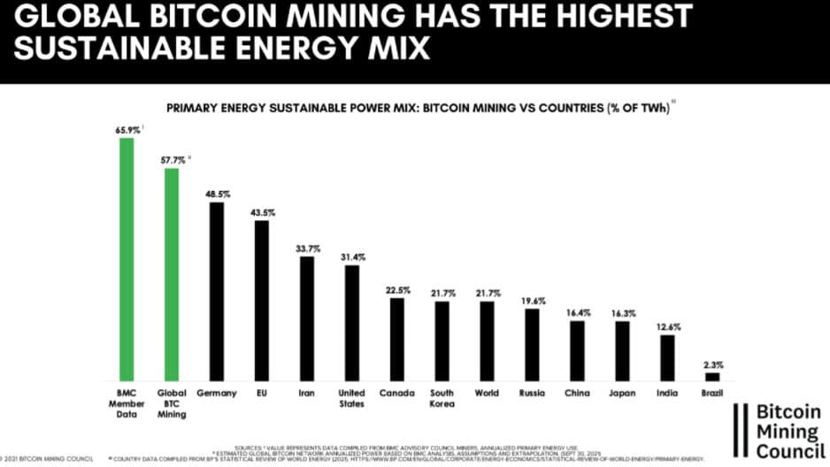 การใช้พลังงานของเครือข่าย Bitcoin เป็นหนึ่งในหัวข้อที่มีการโต้เถียงกันมากที่สุดในปี 2021 ซึ่งเห็นได้จาก Elon Musk, Jack Dorsey และ Michael Saylor ในการโต้วาทีหลายครั้ง ซึ่ง Tesla ยังยกเลิกตัวเลือกการชำระเงินด้วย Bitcoin โดยอ้างถึงการใช้พลังงานของเครือข่าย และอ้างว่าหาก 50% ของพลังงานของเครือข่าย Bitcoin มาจากแหล่งพลังงานหมุนเวียน Tesla จะกลับมาเพิ่มตัวเลือกการชำระเงินด้วย Bitcoin อีกครั้ง