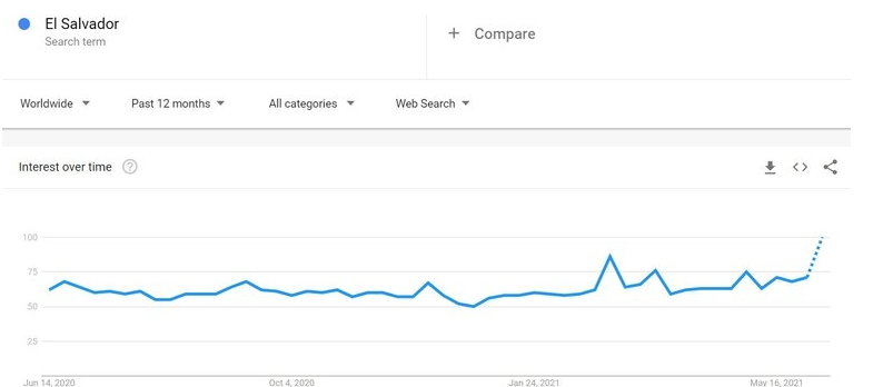 การตัดสินใจของ "เอลซัลวาดอร์" ในการเป็นประเทศแรกที่เสนอให้ Bitcoin ถูกกฎหมาย กำลังได้รับความสนใจจากทั่วโลก โดยการค้นหาโดยใช้ Google จากทั่วโลกด้วยชื่อของประเทศเล็ก ๆ ในอเมริกากลางได้พุ่งขึ้นถึงจุดสูงสุดแล้ว