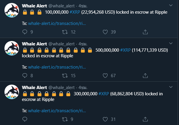 แม้ว่า Ripple จะลดยอดขายลงอย่างมากในไตรมาสที่ 4 การลดลงอย่างรวดเร็วเป็นผลมาจากการลดลงของยอดขายของสถาบัน เช่นเดียวกับการหยุดชั่วคราวในการขายแบบเป็นโปรแกรมของ Ripple เช่นการขาย XRP ในเว็บเทรด cryptocurrency แต่พวกเค้าก็เพิ่งโอน 900 ล้าน XRP กลับไปล็อคในกระเป๋าเงิน Escrow ดังเดิมเมื่อไม่กี่ชั่วโมงที่ผ่านมา หลังจากเพิ่งปลดล็อกไป 1000 ล้าน XRP เมื่องานนี้ ซึ่งเท่ากับว่าเหลือเพียง 100 ล้าน XRP ที่ยังอยู่ ซึ่งอาจจะเหลือไว้สำหรับการขายต่อไป