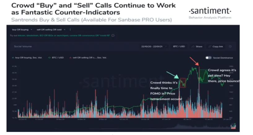 นักวิเคราะห์ตั้งข้อสังเกตว่า นักลงทุนคริปโตส่วนใหญ่ตกอยู่ในวงจรอุบาทว์ของความ FOMO และจากนั้นก็เทขายอย่างตื่นตระหนกในช่วงการปรับฐาน เนื่องจากการติดตามคำพูดของฝูงชนและสื่อสังคมออนไลน์อย่างต่อเนื่อง