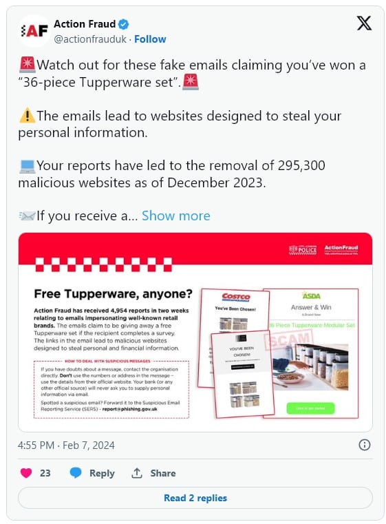 ตามการอัปเดตจากผู้บัญชาการชั่วคราวของตำรวจเมืองลอนดอน Pete O'Doherty ระบุว่า NFIB ค้นพบที่อยู่อีเมลปลอมที่อ้างว่ามาจากไซต์ crypto blockchain.com โดยเจ้าหน้าที่พบว่ามีการลงทะเบียนโดเมนเว็บเพิ่มอีก 42 โดเมน รวมถึง “actionfraud.info” และ “department-fraud.com” ซึ่งเจ้าหน้าที่ได้ปิดกั้นที่อยู่ทันทีที่ถูกค้นพบแล้ว