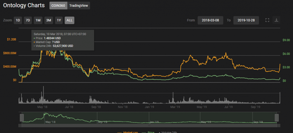 ส่วนเหรียญจากจีนที่พุ่งแรงที่สุดในวันนี้คงหนีไม่พ้น Ontology (ONT) ที่เพิ่มขึ้นถึง 54% เข้าไปแล้วในวันนี้ โดยมีการซื้อขายกันที่ราคาประมาณ $1.09
