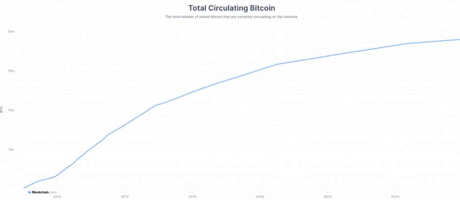 ข้อมูลปัจจุบันจาก Blockchain.com แสดงให้เห็นว่าอุปทาน Bitcoin อยู่ที่ 18.899 ล้าน ณ วันจันทร์ ซึ่งหมายความว่ามีอีกเพียง 10% ของอุปทานทั้งหมดที่เหลือ ในขณะที่ 90% แรกของ BTC ใช้เวลาประมาณ 12 ปีในการขุด แต่ส่วนที่เหลือจะใช้เวลานานกว่านั้น