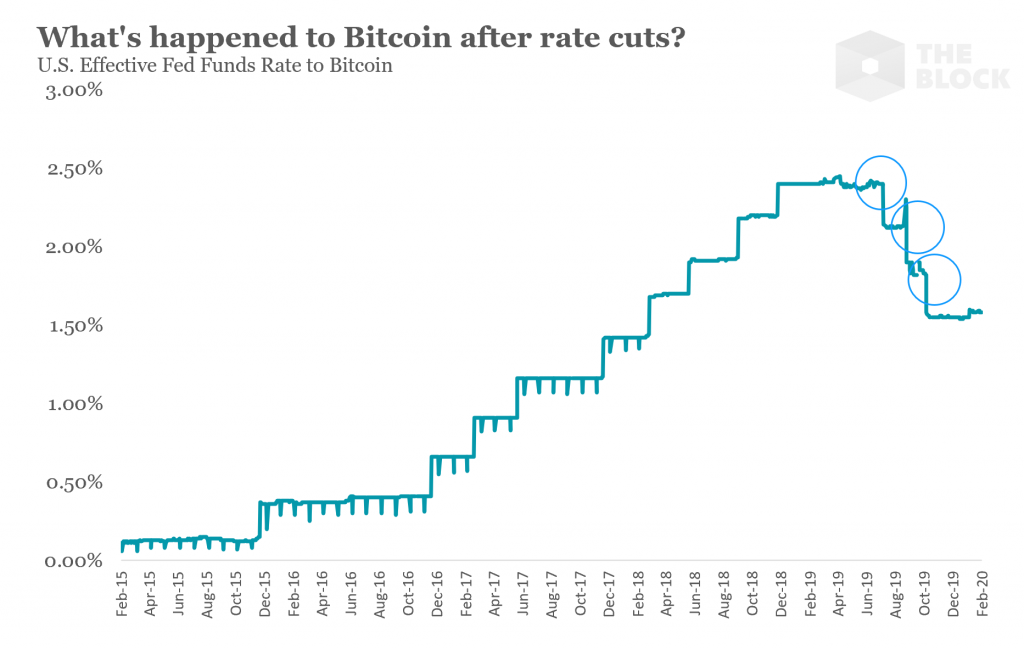 อาจบอกได้ว่า การที่ธนาคารกลางสหรัฐประกาศลดอัตราดอกเบี้ยลงนั้นไม่มีผลต่อสินทรัพย์ที่มีความเสี่ยงอย่างเช่น Bitcoin ในขณะที่ปัจจุบัน มีการคาดการณ์ว่าธนาคารกลางสหรัฐจะประกาศลดดอกเบี้ยอีกครั้ง ทำให้มีนักวิเคราะห์บางคนเชื่อว่าอาจจะได้เห็นการฟื้นตัวของ bitcoin ซึ่งจากการที่ได้ติดตามข้อมูลในอดีตแล้วพบว่าการปรับลดอัตราดอลเบี้ยในอดีตไม่มีความสัมพันธ์กับการเคลื่อนไหวของราคา bitcoin แต่อย่างใด ดังนั้นการที่ราคาเพิ่มขึ้นในช่วงการปรับลดอัตราดอกเบี้ยครั้งต่อไปจึงอาจจะไม่เกิดขึ้น