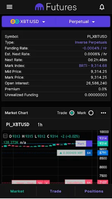 แอพ Kraken Futures นั้นผู้ใช้สามารถเข้าใช้ได้ด้วยรหัส QR code , ดู order book และกราฟราคา , และจัดการ open positions และ open orders รวมถึงดูประวัติบัญชีของผู้ใช้งาน