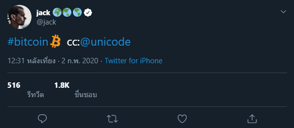 เป็นที่ทราบกันดีว่า Jack Dorsey ซีอีโอ Twitter นั้นชื่นชอบ Bicoin มาก โดยเค้าเคยกล่าวว่า Bitcoin จะกลายเป็นสกุลเงินดิจิตอลของอินเทอร์เน็ต นอกจากนั้น เขายังวางแผนที่จะใช้เวลา 3 ถึง 6 เดือนในแอฟริกาภายในปีนี้ เพื่อสำรวจว่า BTC สามารถช่วยสร้างอิสรภาพทางการเงินข้ามทวีปได้อย่างไร