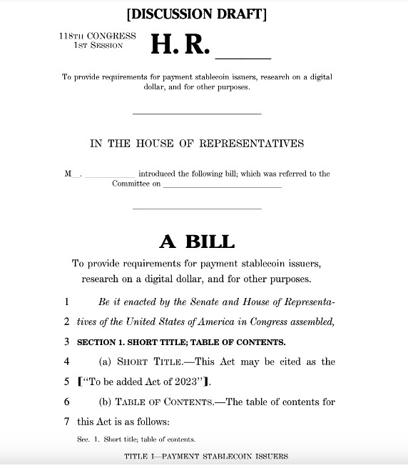 ร่างกฎหมายใหม่ที่จัดทำกรอบสำหรับ Stablecoins ในสหรัฐอเมริกา เตรียมได้รับการเสนอ ซึ่งเกิดขึ้นไม่กี่วันก่อนถึงการ hearing ในหัวข้อนี้ในวันที่ 19 เมษายน โดยร่างดังกล่าวกำหนดให้ Federal Reserve รับผิดชอบ Stablecoin ที่เป็น non-bank เช่น บริษัท Tether และ Circle