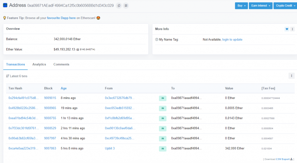 และล่าสุดหลังจากที่มีการลือกันไปต่างๆนาๆ เว็บเทรด UpBit ก็ได้ออกมายืนยันแล้วว่ามีการแฮ็คเกิดขึ้นจริง ซึ่ง ETH ทั้ง 342,000 ETH มูลค่ากว่า 1,500,000,000 บาท ถูกขโมยไปจริงๆ (ถูกโอนไปที่กระเป๋า 0xa09871AEadF4994Ca12f5c0b6056BBd1d343c029)