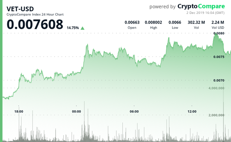 ราคาของ VeChain (VET) ปรับตัวสูงขึ้นกว่า 13% ในช่วง 24 ชั่วโมง หลังจากที่มีการประกาศของ Microsoft , ผู้พัฒนาเกมรายใหญ่ Eidos และ Fables Lands บริษัท game book ในการเปิดตัว card game ที่ใช้บล็อคเชน