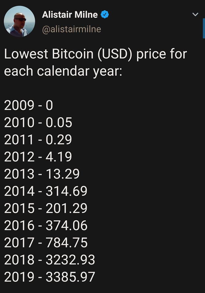Bitcoin นั้นแข็งแกร่งขึ้นทุกปี เนื่องจากราคาต่ำสุดในแต่ละปีที่สูงขึ้นเรื่อย ๆ เป็นรูปแบบใหม่ของสกุลเงินที่จะปฏิวัติอนาคต และเป็นการลงทุนเพื่ออนาคตที่ดีกว่าในสินทรัพย์ที่ให้ผลตอบแทนสูง