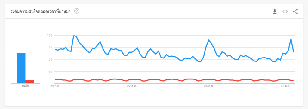 โดยรวมแล้วกราฟของการค้นหาคำว่า blockchain นั้นแทบจะเป็นเส้นตรงเลยทีเดียว เมื่อเทียบกับ Bitcoin ไม่เพิ่มหรือลดลงอย่างชัดเจน แตกต่างกับยอดการค้นหาของ WeChat ที่การค้นคำว่า “blockchain” และ“ bitcoin” พุ่งสูงขึ้นมากตามที่เคยรายงานไป