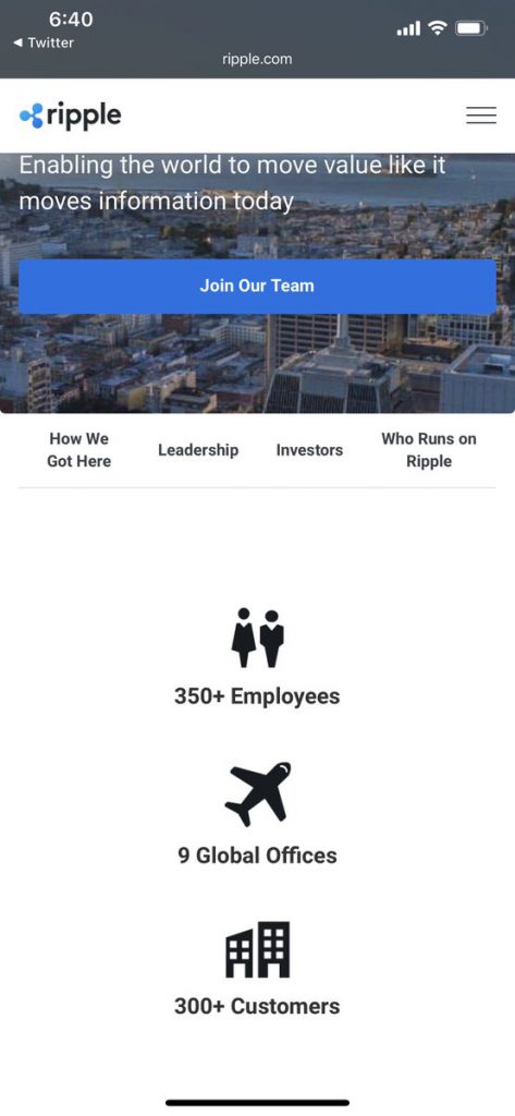 แต่แล้วก็เกิดคำถามตามมาทันที เพราะหลังจากผ่านไปประมาณหนึ่งชั่วโมง ข้อมูลที่แสดงเหล่านี้ก็ถูกเปลี่ยนกลับไปเป็นตัวเลขก่อนหน้านั่นคือ 300 ดังเดิม ซึ่งเป็นตัวเลขที่ Brad Garlinghouse ซีอีโอ Ripple ออกมาประกาศอย่างเป็นทางการเมื่อเดือนพฤศจิกายนปีที่แล้ว