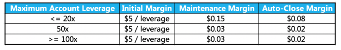 การคำนวณความเสี่ยงทั้งหมดในสัญญาขึ้นอยู่กับ "risk price" ที่ $5 ต่อสัญญาโดยมี margins ที่จำเป็นสำหรับ 1 TRUMP เท่ากับ: